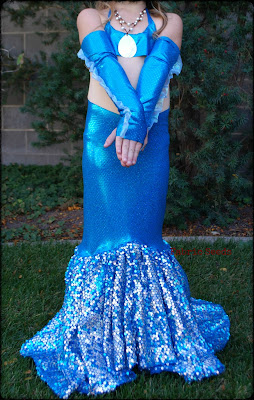 One of my favorite parts of this costume is the arm bands. Not knowing what the weather might be on Halloween night, I needed to come up with some way to keep this little girl warm. I made the arm bands long, to cover as much as possible. I especially love the little fin along the side.